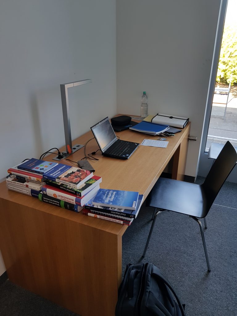 Es dauerte dann aber noch bis zum 1. Juli, bis ich mit dem Schreiben loslegen konnte. Ab sofort war ich 2 Wochen Vollzeit in der Uni-Bib in Darmstadt, anfangs an den öffentlichen Arbeitsplätzen, anschließend hatte ich einen der raren Einzelarbeitsplätze ergattert, der es mir ermöglichte, meine gesammelte Literatur dort einschließen zu können.
