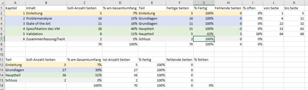 Gibt es eine Möglichkeit, die Excel-Tabelle, die die verbleibende Zeit in Relation zu den noch zu schreibenden Seiten setzt, zu bekommen?