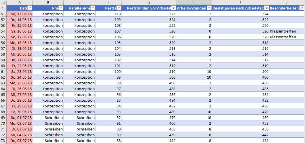 Ich bin normalerweise eher ein Chaot, mir liegt eine weitsichtige Planung nicht sonderlich. Ohne meinen Projektplan wäre ich allerdings ziemlich aufgeschmissen gewesen.