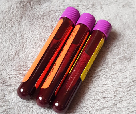 Heute mittag brachte der Briefträger dann das angekündigte Blutentnahmeset. Gut, wenn man eine Ärztin geheiratet hat, dann muss man für die Entnahme nicht mal aus dem Haus. Wenige Minuten später waren die drei enthaltenen Röhrchen mit meinem Blut in zwei vorfrankfierte Päckchen verpackt, eine gute Stunde später dann schon im Briefkasten auf dem Weg zu 2 Analyselabore in Essen und Köln.
