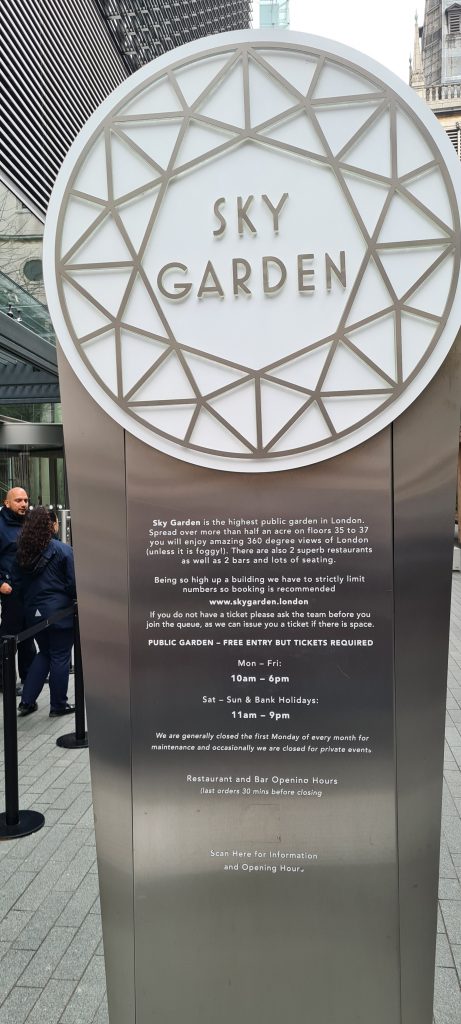 Der Tag war heute ziemlich vollgepackt. Frühstück in Kensington, Mittagessen im SkyGarden, und heute Abend geht es dann noch in unseren Lieblings-Pub, das Cross Keys in Hammersmith. Dort werden wir versuchen, den vorletzten Platz, den wir letztes Jahr im März errungen haben, zu verteidigen (oder besser zu werden, wir werden sehen).