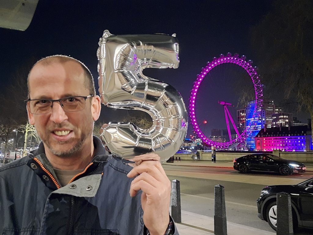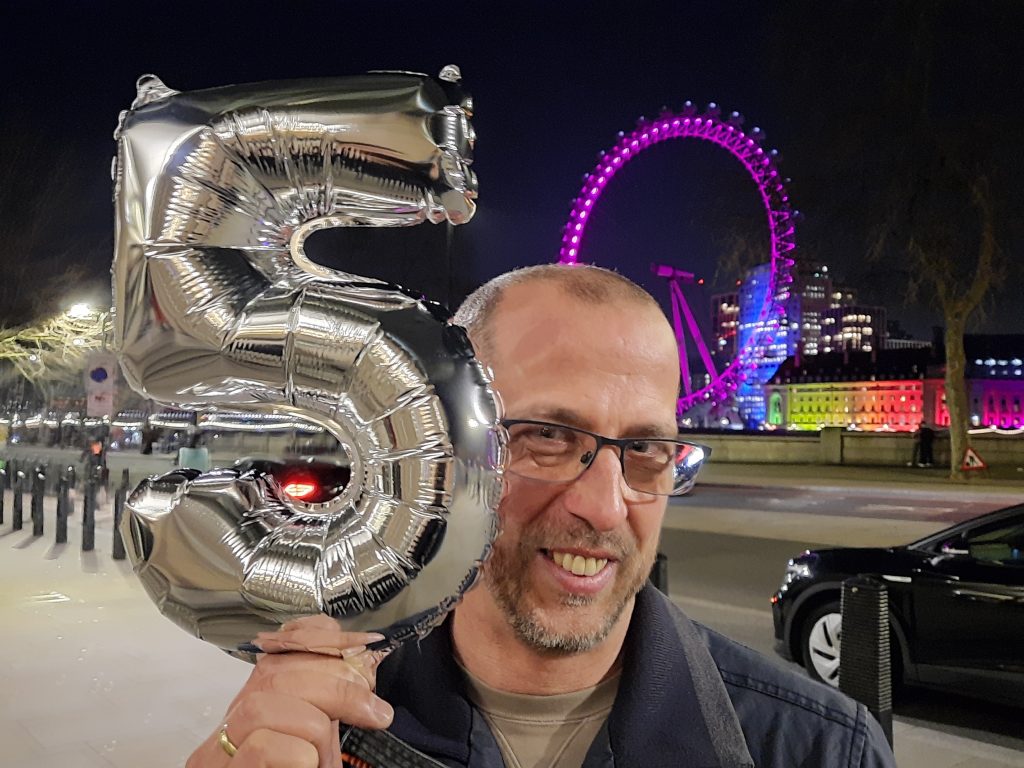 Egal, ich habe also das halbe Jahrhundert in London voll gemacht und die Gelegenheit genutzt, das London-Eye für ein passendes Statusbild zu missbrauchen. Schön ist es geworden, vielen Dank an Meike, Bob und Marc für Eure Geduld bei unzähligen unterschiedlichen Einstellungen und Posen.