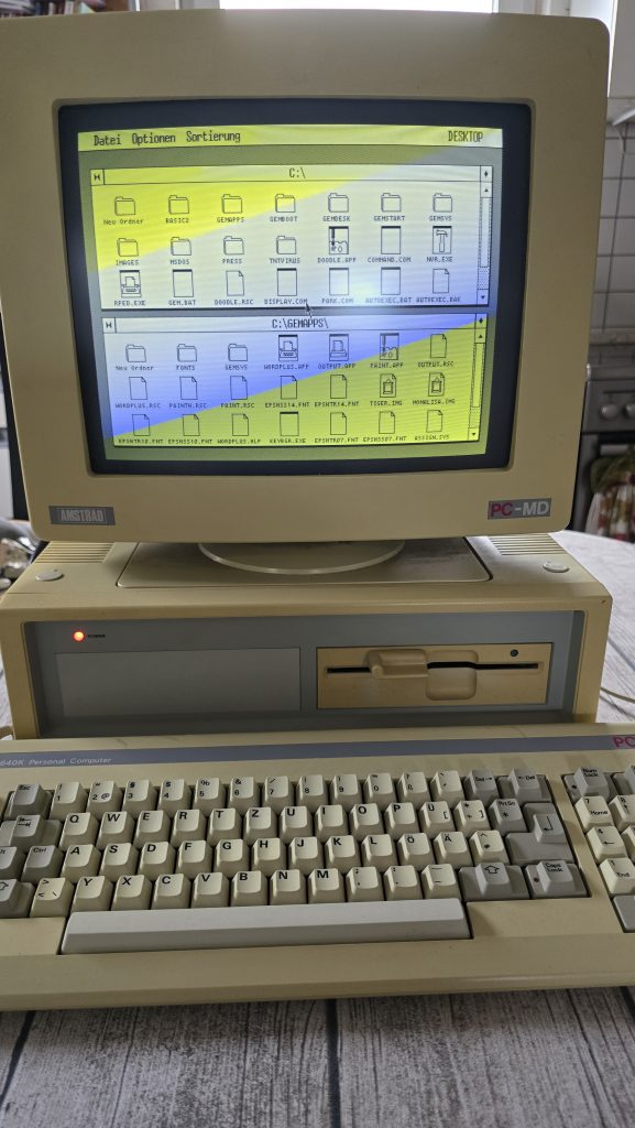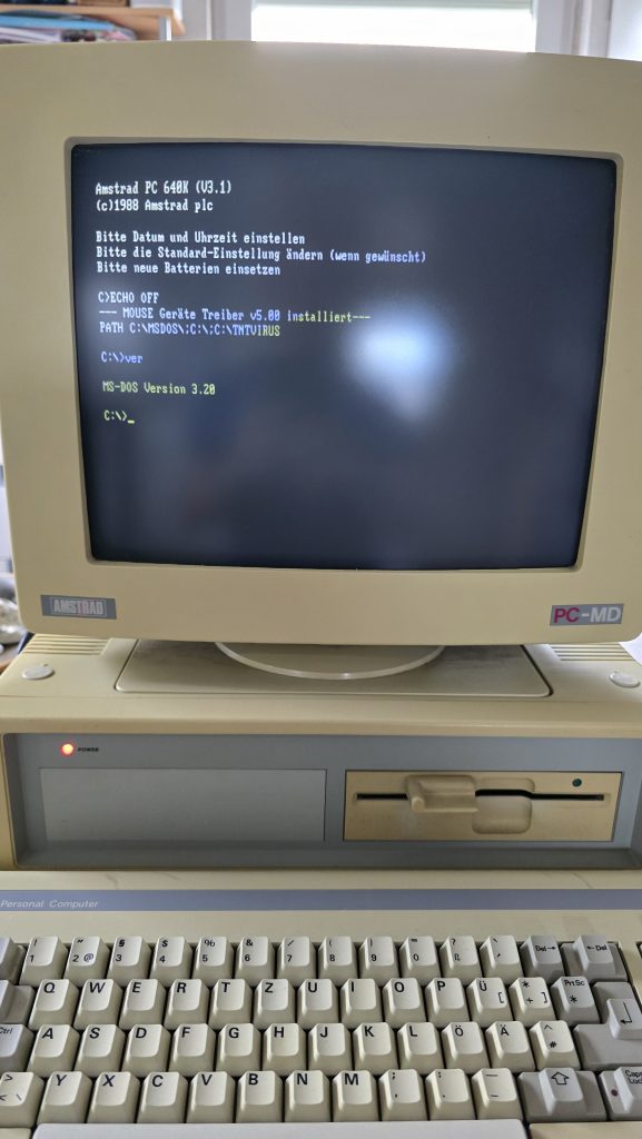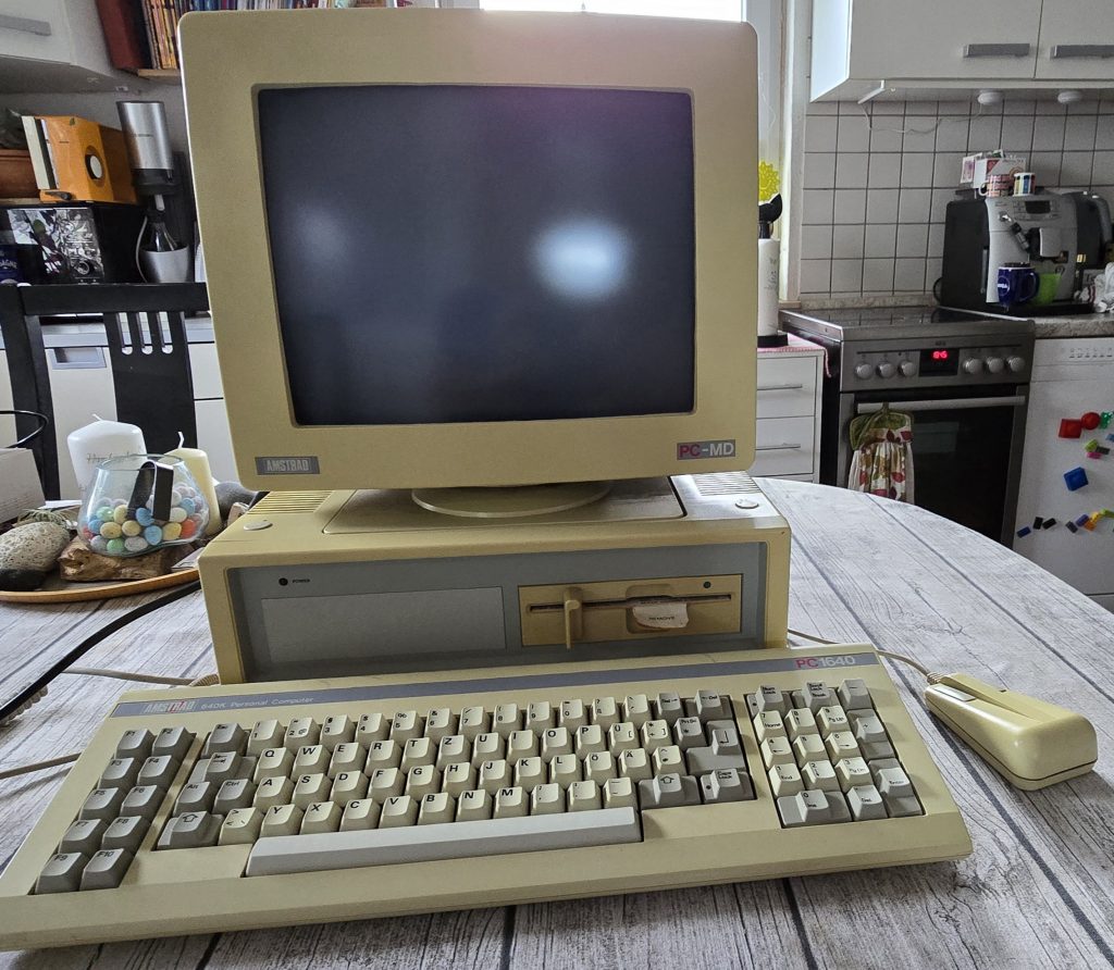 Und wie so oft in meinem Leben begann ich die Ausbildung, ohne mich auch nur ein klein wenig über die Inhalte und Voraussetzungen informiert zu haben. In meiner Welt sah die Ausbildung in etwa so aus, dass wir die komplette Woche vor unseren C-64 sitzen und munter BASIC-Programme schreiben. Tatsächlich sah der Stundenplan am Ende dann doch etwas anders aus, und wir programmierten auch nicht auf C-64ern sondern auf Personal-Computern. Und wer keinen hatte, war einigermaßen aufgeschmissen. Das heißt: Wollte man die Programmier-Hausaufgaben machen, musste man entweder nachmittags das Computer-Labor der Schule nutzen oder man musste sich einen eigenen PC zulegen. Und so hielt dann im Herbst 1990 der erste PC Einzug ins Haus der Familie Bestgen: Ein Amstrad-PC 1640.