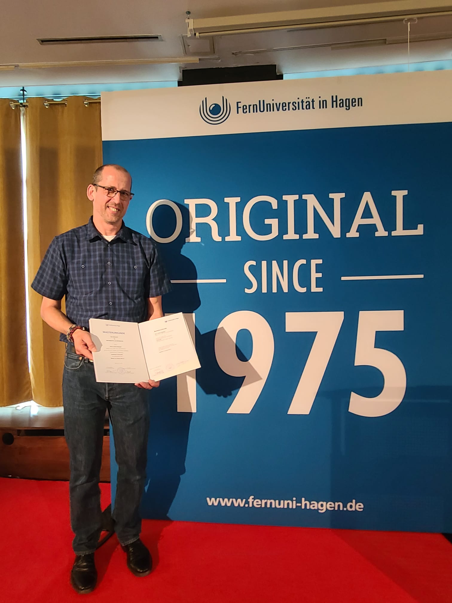 Irgendwann im Jahr 2011 habe ich dann den Entschluss gefasst, ein Fernstudium aufzunehmen (den Bericht dazu findest Du hier). Das Thema für die Masterarbeit fand ich dann im Arbeitskontext: Es ging um die Konzeption eines Vorgehensmodells für die Cloud-Migration der vielen Lotus-Notes-Anwendungen, die zu dieser Zeit in den Verkehrsleitungen genutzt wurden. Insbesondere in der heißen Zeit des Runterschreibens wurde ich vom Team und insbesondere von meiner Chefin Nina unterstützt, so dass ich am 1. Oktober die Masterarbeit einreichen und mit einige Wochen später endlich „Master of Science“ nennen durfte.