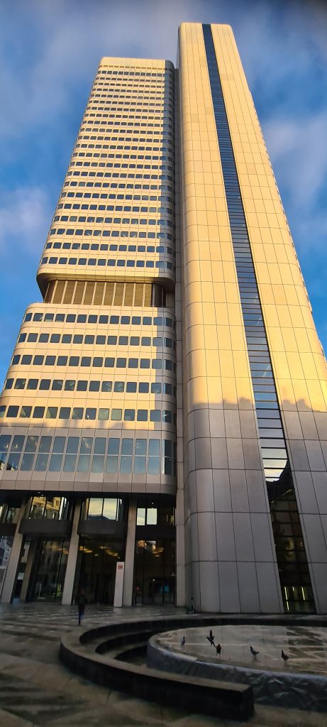 Mein Büro befindet sich seit Ende 2023 im Silberturm im Frankfurter Bahnhofsviertel. Schön daran ist der Blick aus dem 25. Stock über die Frankfurter City und das Umland. Eher negativ ist der Weg vom Bahnhof zum Turm und zurück zu bewerten – besonders morgens um 6 Uhr, wenn noch nicht viele Leute unterwegs sind. Nach ein paar Jahren in Frankfurt ist man allerdings abgehärtet genug, um gesund da durch zu kommen. Ein schöner Anblick ist es aber trotzdem nicht.